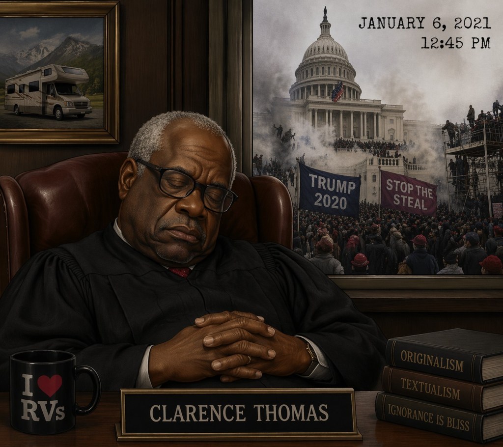 Thomas’s role in Trump v. United States completely undermines his UT lecture. The Court’s syllabus states that the indictment alleged Trump, after losing the 2020 election, conspired to overturn it by spreading knowingly false claims. Thomas joined the majority holding that a former president has absolute immunity for actions within his exclusive constitutional authority and at least presumptive immunity for all official acts; he also filed a concurrence. The ruling is sweeping enough to place a vast sphere of presidential conduct behind criminal accountability. A president alleged to have tried to overturn an election is exactly the kind of figure for whom that shield is most dangerous. So when Thomas denounces “subservience and weakness” and invokes the signers’ courage against power, he is speaking as a justice who helped build perhaps the most expansive shield for presidential impunity in modern American law. Just another contradiction from Thomas.
